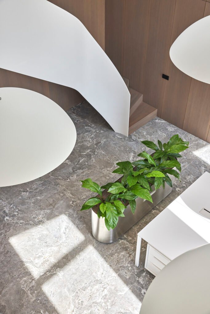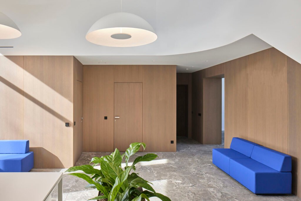 Žvėryne įrengto ofiso interjero idėja padiktuota mansardinio aukšto erdvės bei jame įsikūrusios įmonės darbo specifikos. Patalų erdvė medžiagiškai, spalviškai padalinta į dvi zonas/aukštus. Pirmame aukšte, kuriame pagrindinės darbo zonos, vyrauja faneruotės apdaila, nerūdijančio plieno elementai. Antresoliniame aukšte suprojektuotose poilsio, posėdžių zonose numatyti ramūs, šviesūs tonai. Nerūdijančio plieno vazonai, dideli masyvūs šviestuvai bei baltas laiptų tūris tampa akcentais visoje erdvėje. Interjeras sukurtas taip, kad atitiktų įmonės poreikius, sukurtų erdvę efektyviam darbui, poilsiui bei reprezentuotų įmonės darbo specifiką.