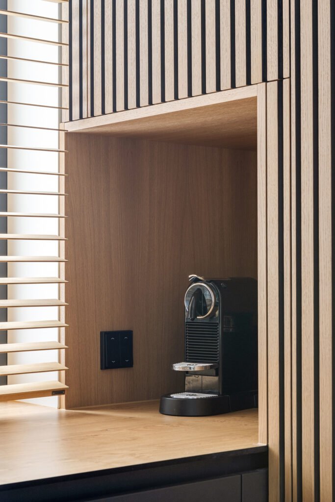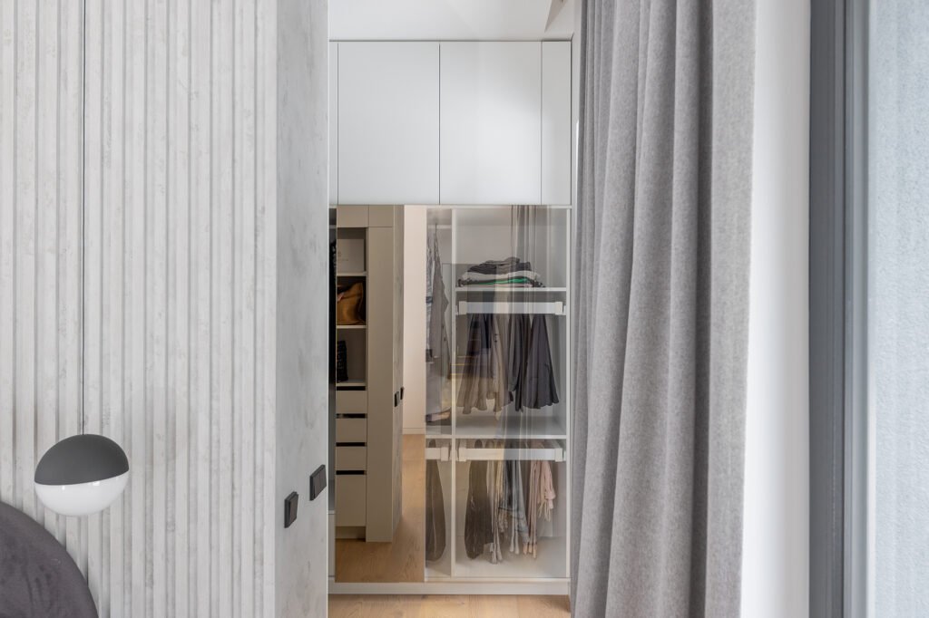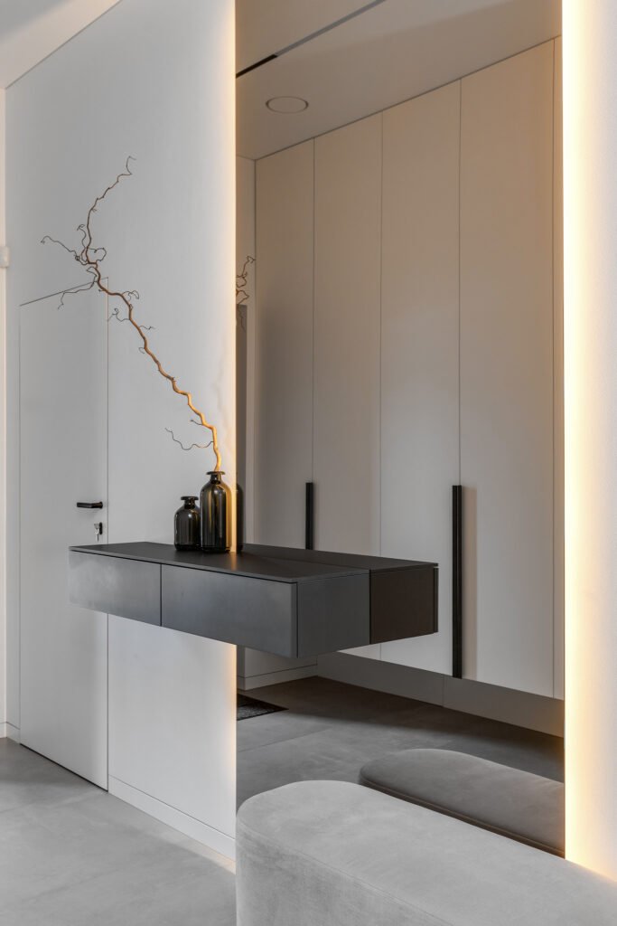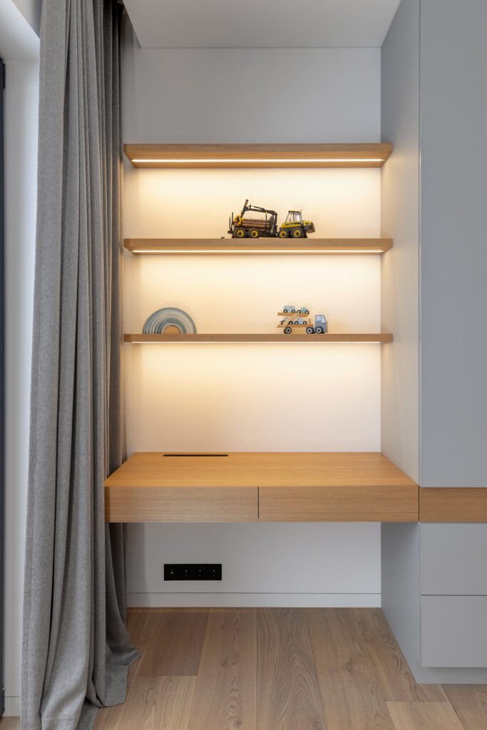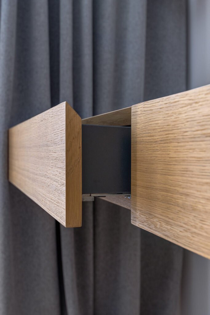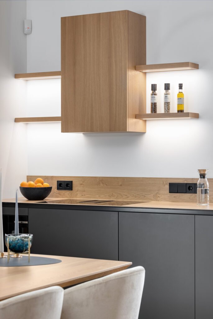 Individualaus namo interjeras, miško apsuptyje, Milošo g. Vilniuje. Projektuotas 4 asmenų šeimai. Frezuoti, skirtingų medžiagų atsikartojantys sprendimai erdvėse, atliepia ne tik vizualius bet ir paslėptus funkcinius sprendimus. Naudojamos medžiagos sukuria harmoningą modernios estetikos ir natūralios šilumos derinį.